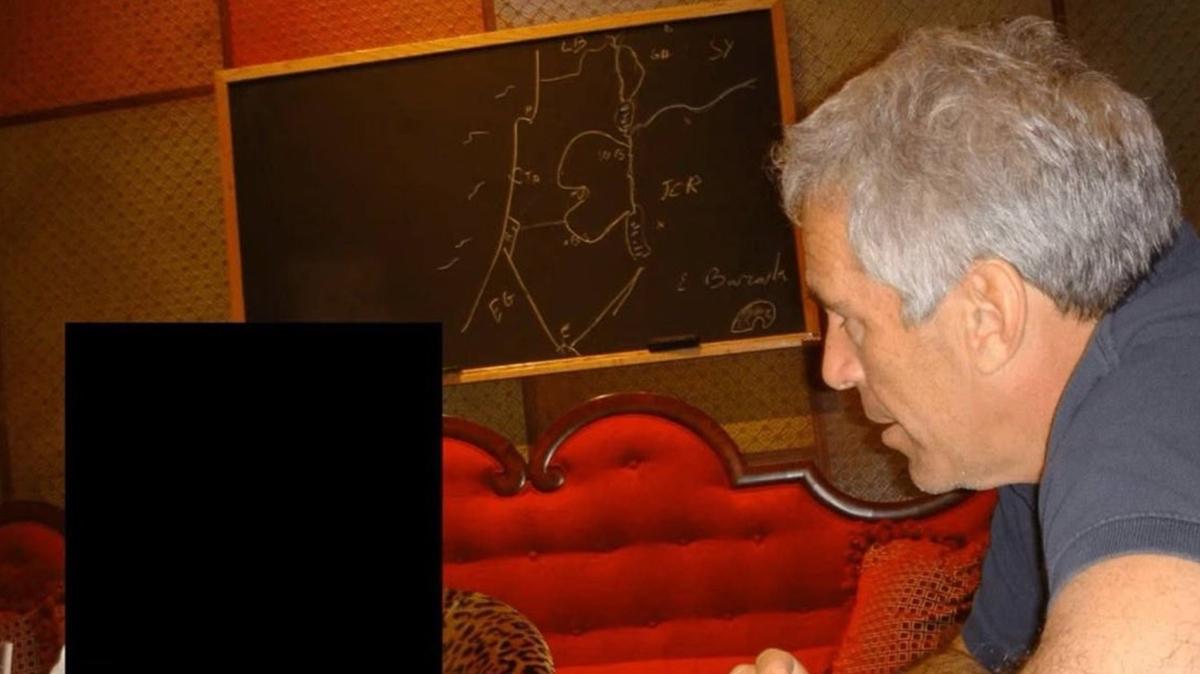 ABD Adalet Bakanlığı’nın, ABD’de reşit olmayan kız çocuklarına yönelik fuhuş ağı kurduğu iddiasıyla yargılandığı sırada hapishanede ölü bulunan milyarder Jeffrey Epstein hakkında yayımladığı dosyalarda bulunan fotoğraflarda, eski İsrail Başbakanı Ehud Barak’ın imzasıyla kara tahtaya çizilmiş tartışmalı bir harita göze çarpıyor.